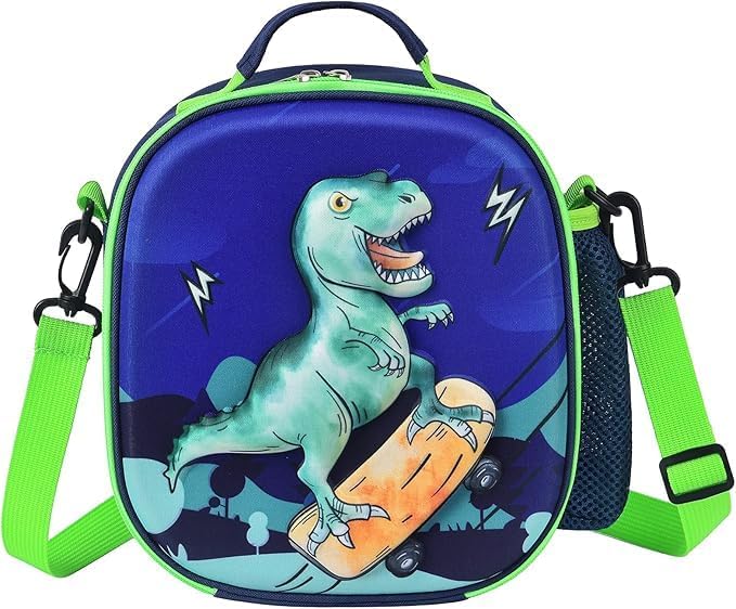 لانش باج معزول بتصميم ديناصور لطيف ثلاثي الأبعاد بسعة كبيرة للمدرسة والنزهات مقاوم للماء وقابل لإعادة الاستخدام مع حزام كروس قابل للفصل