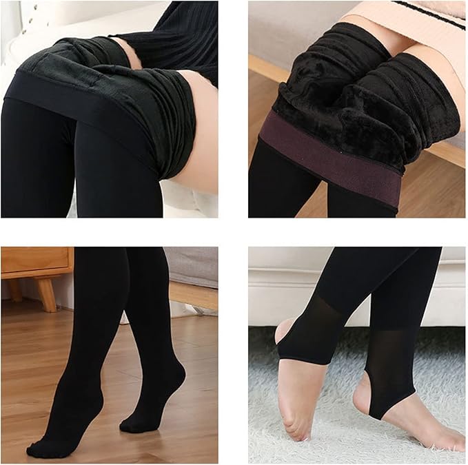 بنطلون لجينجز شتوي حراري عالي الخصر للنساء مصنوع من قطيفة ليكرا ناعمة ومبطن بالفرو بتصميم فضفاض لون سادة مقاس واحد مناسب لوزن 60 إلى 100 كيلو