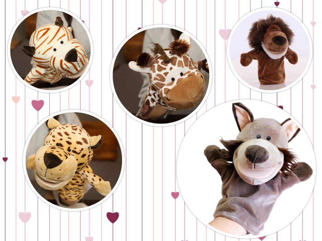 عروسة يد قطيفة ناعمة بتصميم حيوان حديقة الحيوان بفم وأذرع متحركة لسرد القصص ولعب الأدوار والتدريس في مرحلة ما قبل المدرسة والتعلم التفاعلي، لعبة تعليمية هادفة
