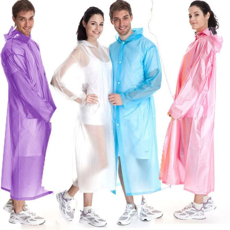 معطف مطر قابل لإعادة الاستخدام للبالغين من مادة ايفا مقاوم للماء بتصميم محمول وقابل للتعبئة للسفر والتخييم والأنشطة الخارجية، جاكيت مطر سميك طويل للرجال والنساء