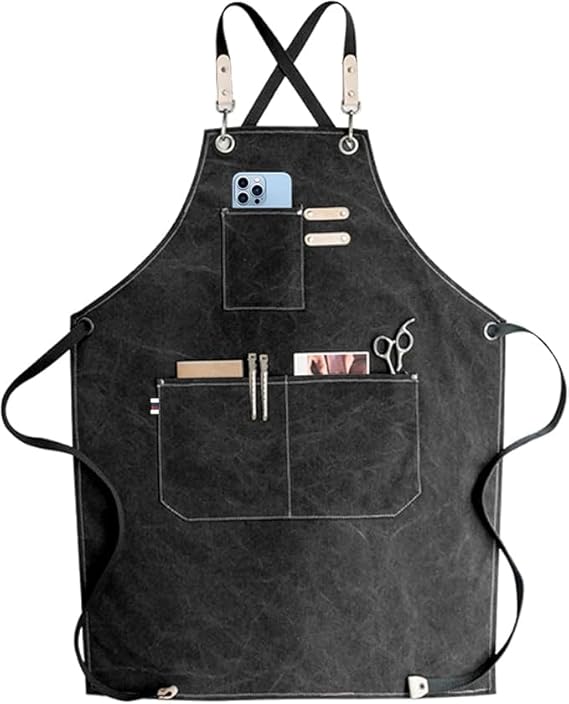 مريلة مطبخ شديدة التحمل بجيوب واسعة مصنوعة من قماش مقاوم للماء والحرارة، تصميم خلفي متقاطع قابل للتعديل للاستخدام في الطهي والمطبخ وصالونات الحلاقة والمطاعم للرجال والنساء