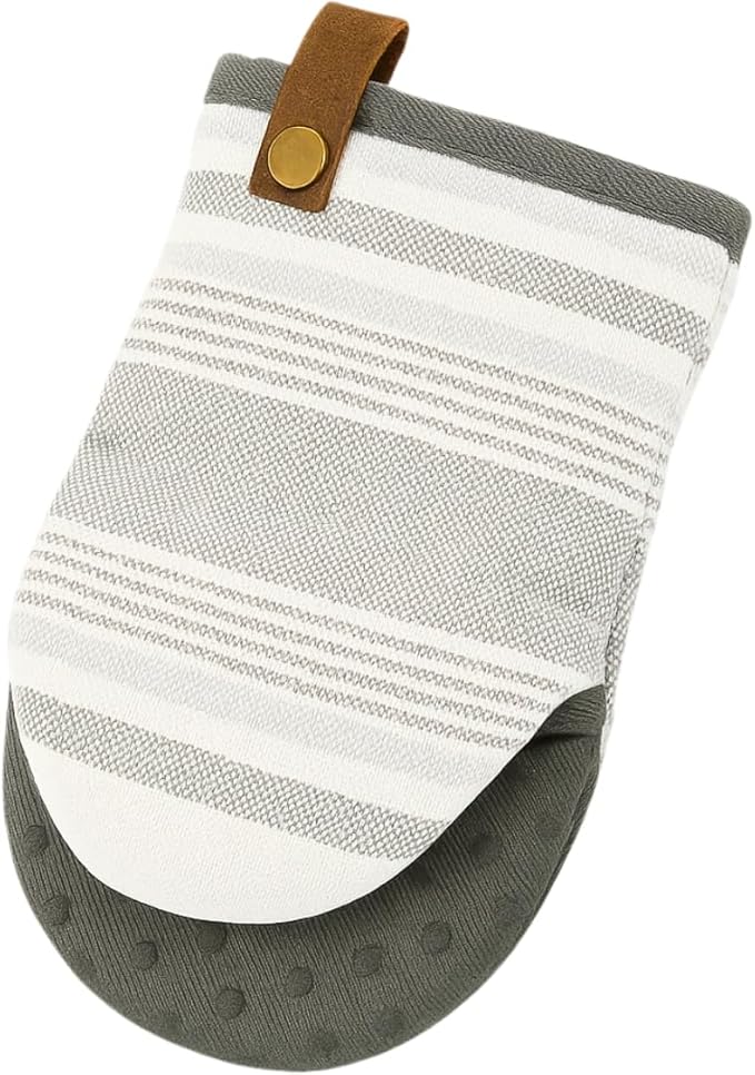 جوانتي مطبخ قطني مبطن مع نقاط من السيليكون للقبضة وحلقة تعليق، مقاوم للحرارة وغير قابل للانزلاق ومتين ومريح، للاستخدام عند للطهي والخبز والتحميص والشواء واستخدام الميكروويف (زوج واحد)