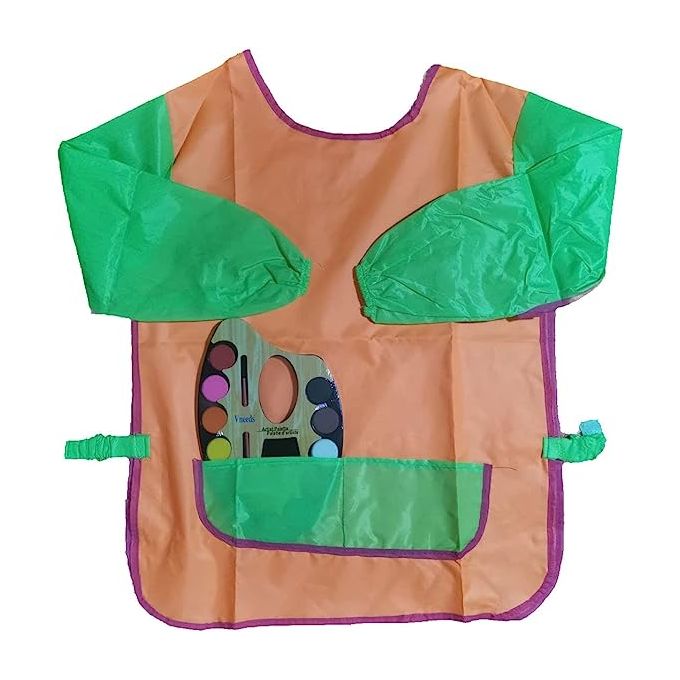 مريلة طلاء مقاومة للماء باكمام طويلة – استخدام متكرر، جيبان اماميان يسهل استخدامهما للحفاظ على الملابس وحمايتها من البقع عند التلوين واللعب بالالوان المائية لأطفال من سن 3 الي 12 سنه