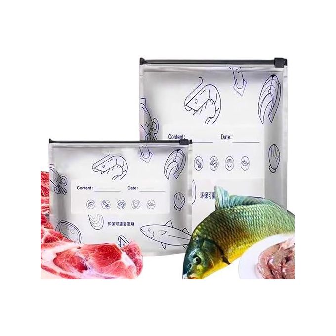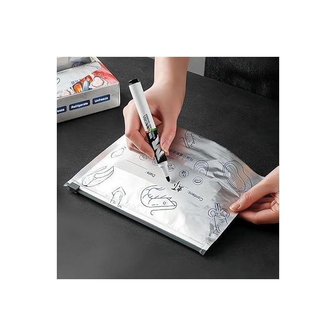 مجموعة من 10 أكياس تجميد من رقائق الألومنيوم قابلة لإعادة الاستخدام، أكياس تخزين قائمة مانعة للتسرب بسحاب، خالية من مادة BPA، أكياس طعام منزلقة للحوم والمأكولات البحرية والخضروات والفواكه مع ملصق