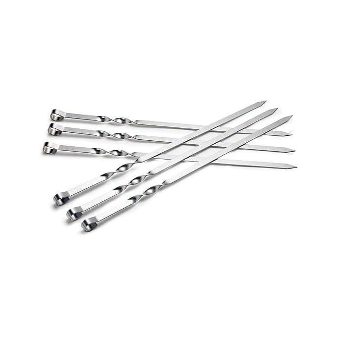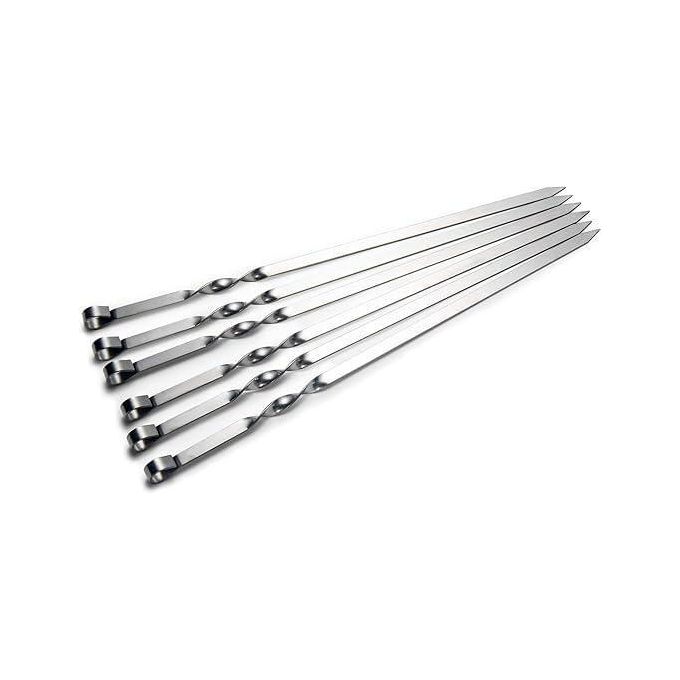 مجموعة من 6 أسياخ كباب معدنية مسطحة طولها 44 سم من الفولاذ المقاوم للصدأ للشواء والشيش والشوي، مجموعة أسياخ عريضة قابلة لإعادة الاستخدام ومخصصة للحوم والخضروات والشوي والطهي في الهواء الطلق