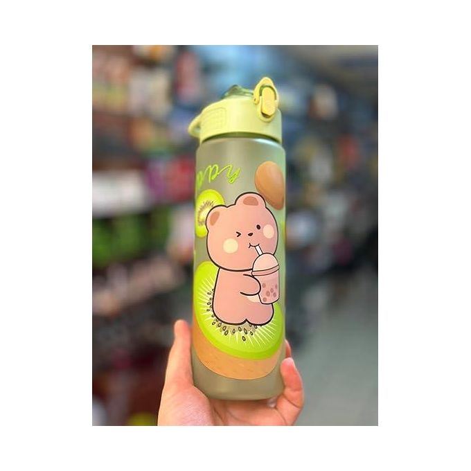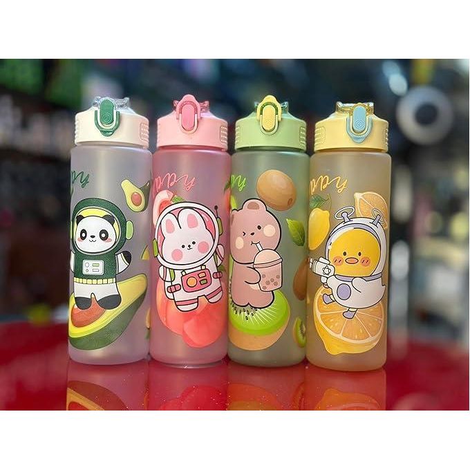 زجاجة ماء بتصميم حيوانات كرتونية بسعة 700 مل مع فاتحه قابلة للطي وغطاء علوي قابل للفتح، فلتر مدمج للسفر، المدرسة، الجيم