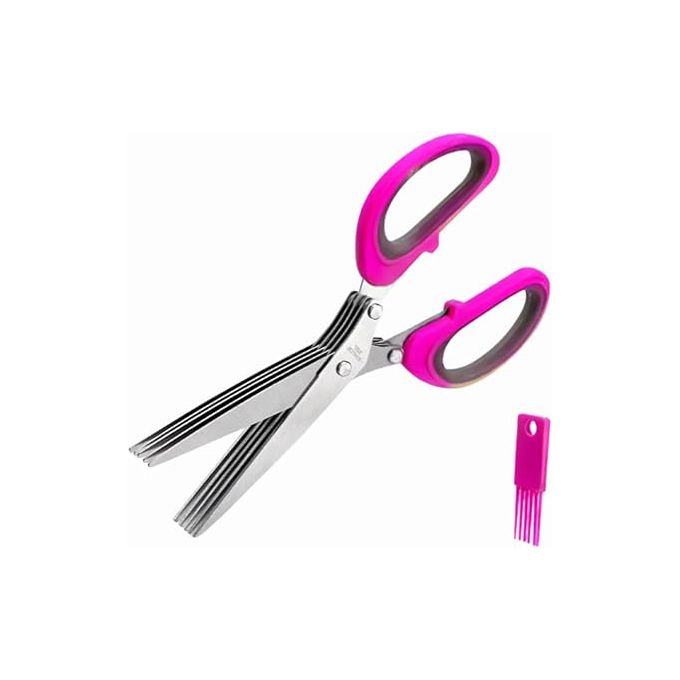 مقص تقطيع متعدد الاغراض مع 5 شفرات من الستانلس ستيل ومشط تنظيف (فوشيا)