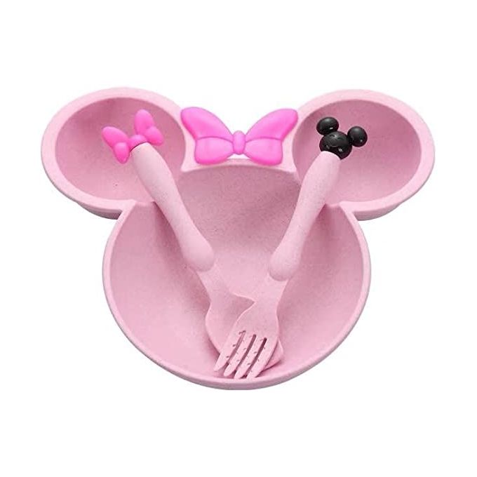 طبق طعام الأطفال 3 * 1 – صحي وآمن – مصنع من مواد طبيعية – مناسب للطعام البارد والساخن
