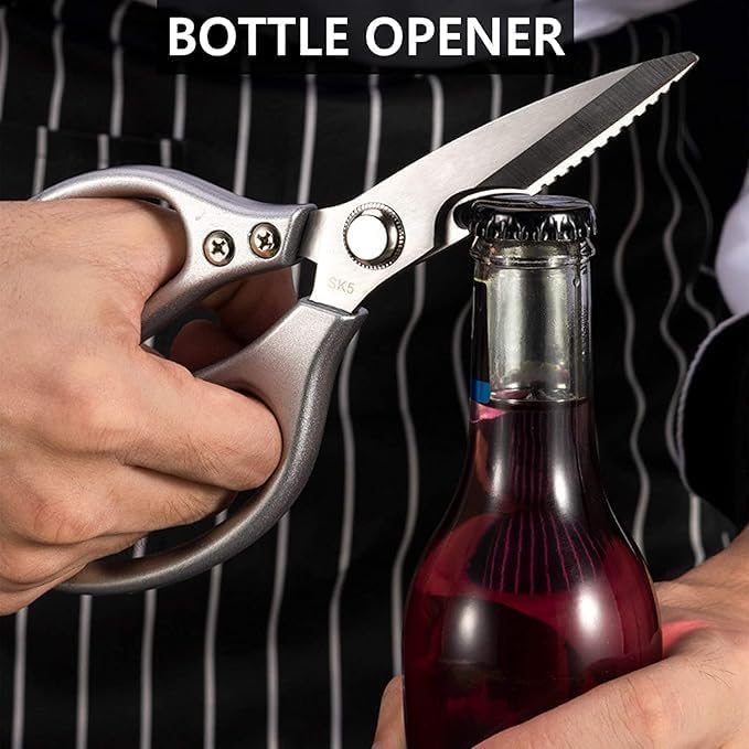مقص مطبخ من الفولاذ المقاوم للصدأ، مقص دواجن متين للحوم والفراخ والمأكولات البحرية والخضروات والأعشاب والشواء، أداة مطبخ متعددة الوظائف مع فتاحة زجاجات (ذهبي)