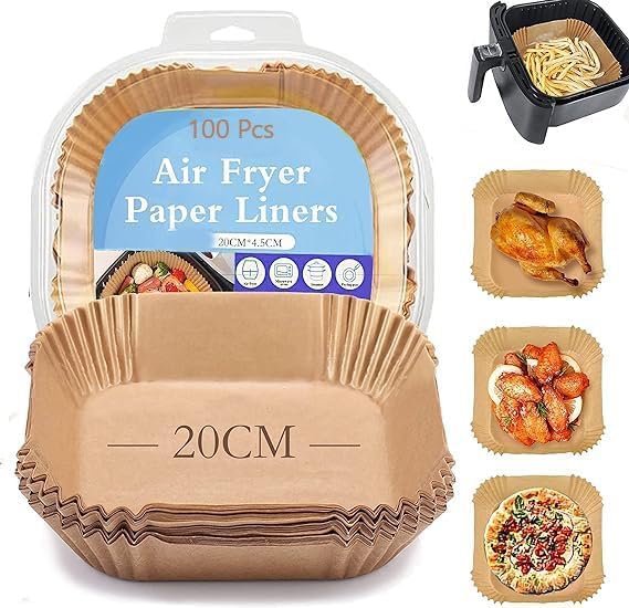 بطانات قلاية هوائية ورقية مربعة 20 سم/200 ملم حجم كبير للاستعمال مرة واحدة للقلاية الهوائية من السيليكون المقاوم للماء سعة 5 – 6 لتر (100 قطعة)