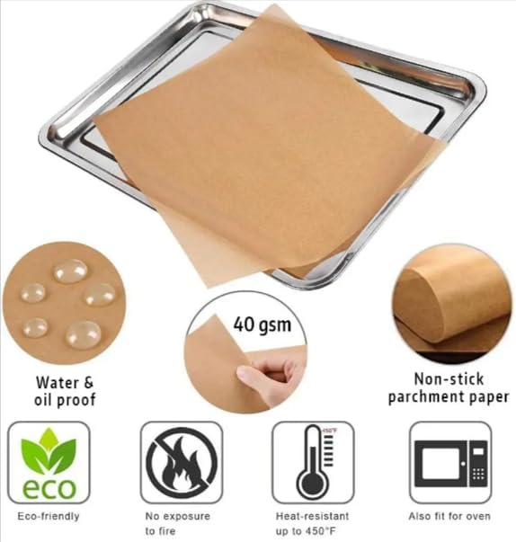 لفة ورق زبدة للخبز وتغليف الطعام غير مبيض و غير لاصق و مقاوم للحرارة والزيوت، مناسب للاستخدام للفرن و بطانات للقلاية الهوائية، للخبز والتبخير والقلي، 10م × 30 سم