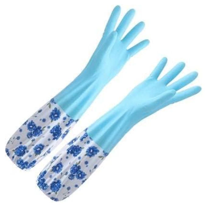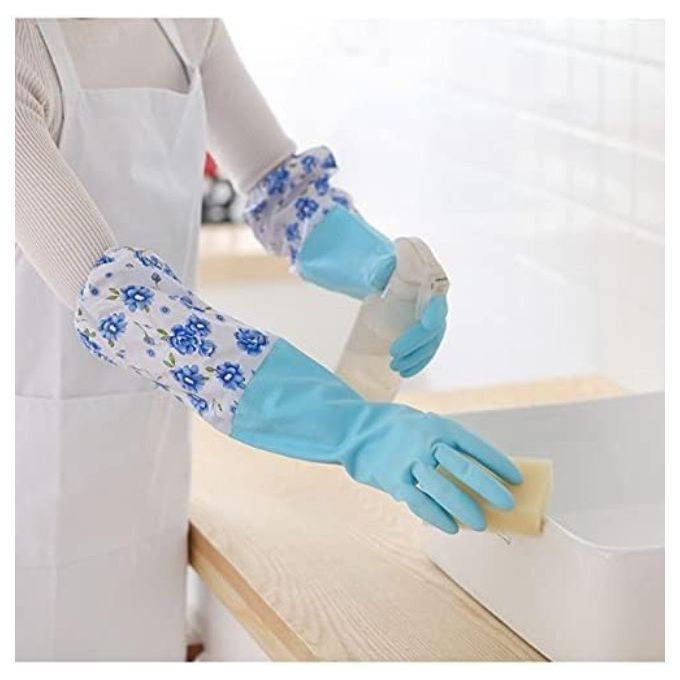 قفازات تنظيف منزلية قابلة لاعادة الاستخدام ، قفازات غسيل مع اساور طويلة مع بطانة قطنية لتنظيف المطبخ والحمام والفناء