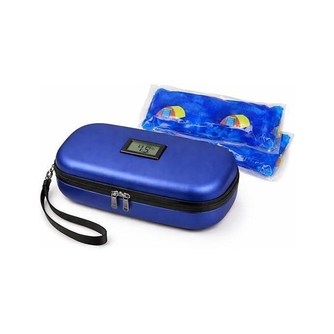 حقيبة سفر محمولة لتبريد الأنسولين، مزودة بشاشة عرض درجة الحرارة، مقاومة للماء، لتنظيم وتخزين الأدوية الطبية، لحماية أدوية مرضى السكري، حقيبة حمل صغيرة الحجم وآمنة للاستخدام اليومي في الهواء الطلق وحالات الطوارئ، لون أزرق.