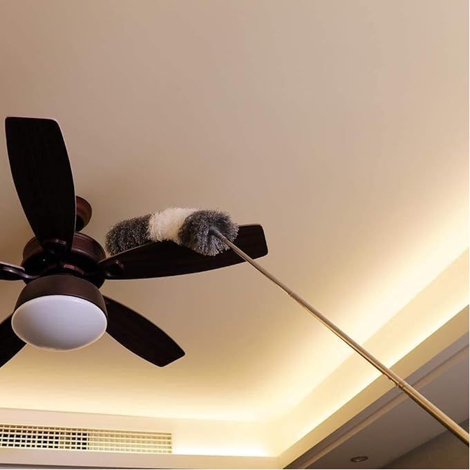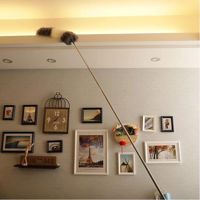 منفضة غبار تلسكوبية قابلة للتعديل مع عمود من الفولاذ المقاوم للصدأ وسقف شبكي وزاوية شبكية ومقبض منظف غبار منزلي وفرش منافض بطول 245 سم