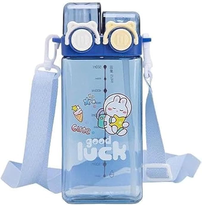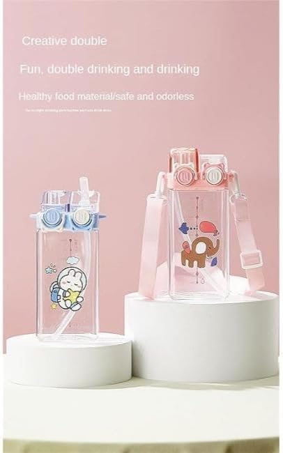 زجاجة مياه بشفاطة مزدوجة لطيفة سعة 580 مل محمولة مع حافة رياضية من الاكريليك بتصميم رسوم كرتونية