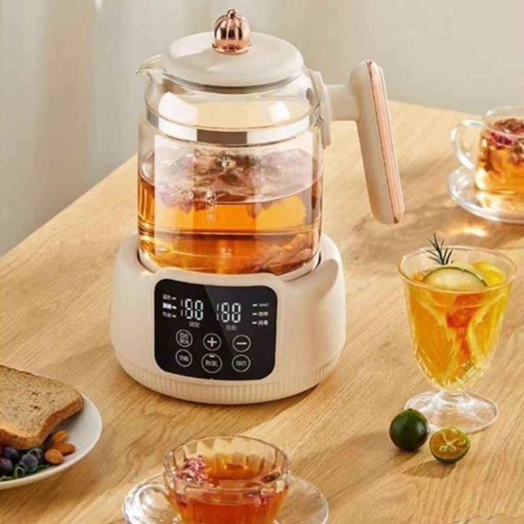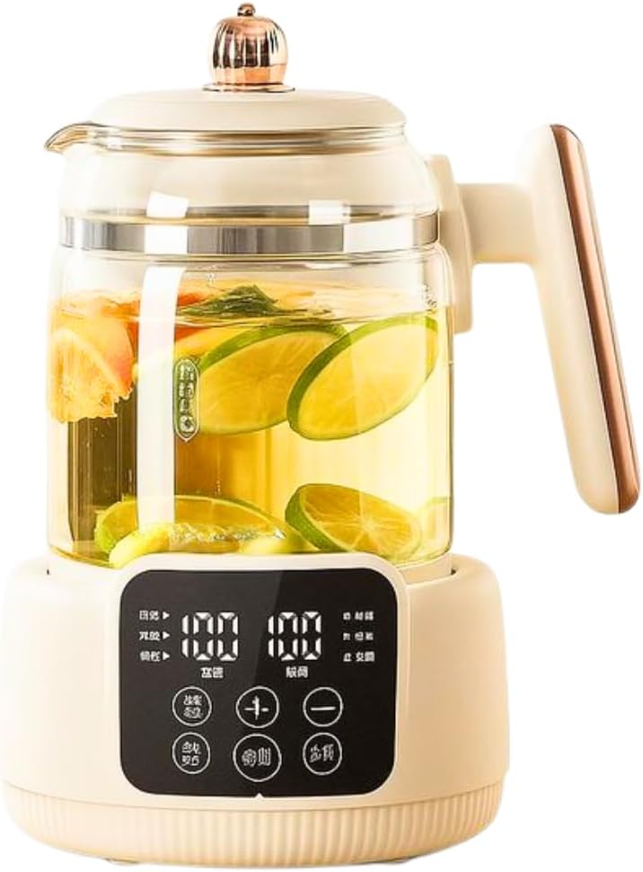 غلاية شاي كهربائية زجاجية بشاشة رقمية بسعة 1.5 لتر وشاشة تعمل باللمس وخاصية التحكم في درجة الحرارة ومؤقت 800 واط وستة برامج ذكية تسخين سريع امن للاستخدام في المطبخ الحديث