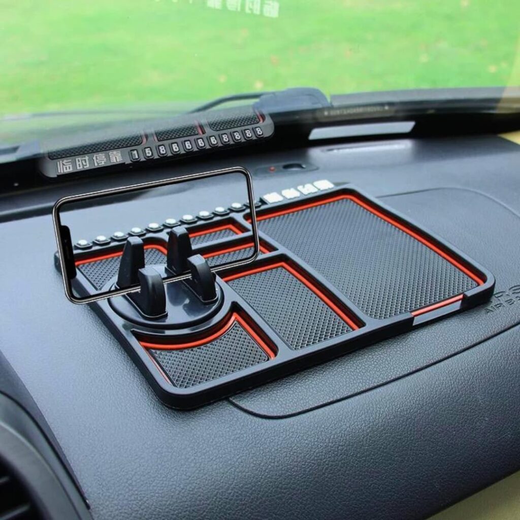 حامل الهاتف للسيارة 4 في 1 مضادة للانزلاق، اكسسوارات حامل الموبايل شاملة مقاومة للحرارة لاصقة بأرقام مع وظيفة دوران 360 درجة، لأجهزة نظام تحديد المواقع GPS وUSB والمفاتيح ونظارات شمس