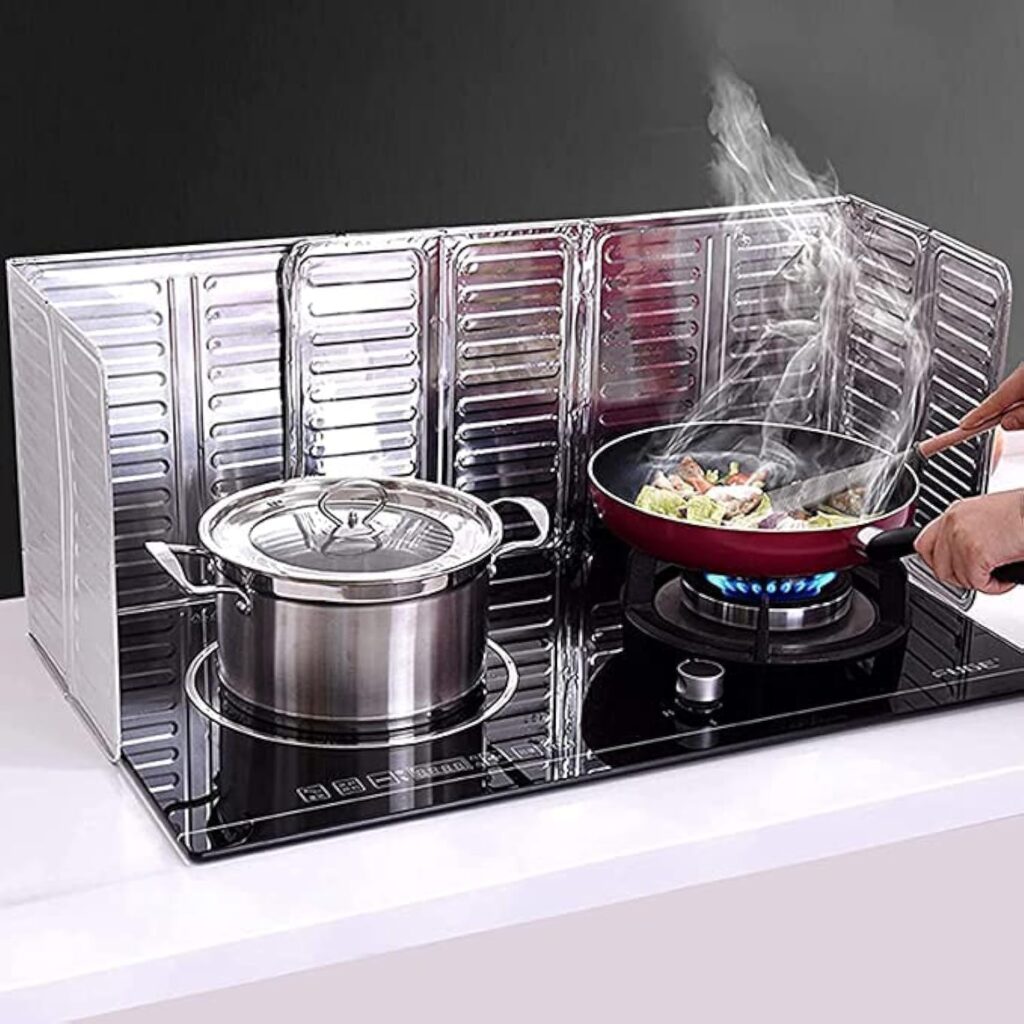 حاجز فويل قابل للطي للحماية من الهواء ورذاذ الزيت للطبخ وطاسة القلي على البوتجاز وغسالة الاطباق، عبوة من 3 قطع