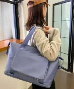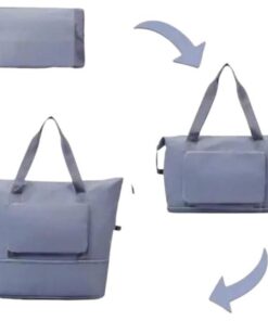 حقيبة توت كبيرة من القماش، مقاومة للماء، قابلة للطي مع فصل جاف ورطب، مثالية للسفر وصالة الألعاب الرياضية – لون بترولي