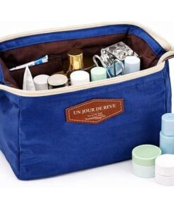 شنطة مستحضرات تجميل صغيرة الحجم لتخزين أدوات الزينة والسفر بسحاب، شنطة يد عملية من قماش متين للاستخدام اليومي، لون أزرق كحلي