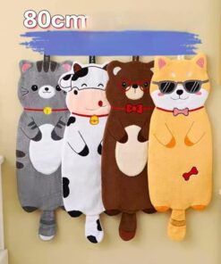 منشفة يد معلّقة بتصميم حيوانات كرتونية مصنوعة من قماش ناعم عالي الامتصاص، ديكور عملي للمطبخ والحمام، منشفة تجفيف للاستخدام المنزلي مزودة بحلقة تعليق، بطول 80 سم.