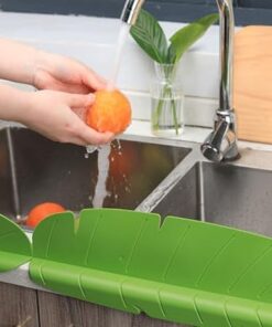 واقي تناثر المياه للحوض على شكل ورقة مصنوع من السيليكون، حاجز خلفي للمياه مع درع للصنبور، مناسب للمطبخ والحمام، مضاد للتناثر أثناء غسل الأطباق. مزود بـ أكواب شفط للتثبيت ولوح حجز يحمي سطح الرخامة، إكسسوار حماية للكونتر، باللون الأخضر.