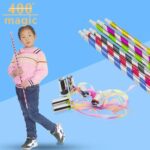 عصا سحرية تفتح من 5 سم إلى 70 سم لألعاب التسلية ، قطعة واحدة من البلاستيك والفضة والأصفر