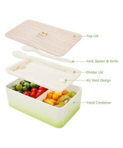 لانش بوكس مقسم على الطراز الياباني 1000 مل مع سكين شوكة وملعقة مانعة للتسرب مع مقسم خال من BPA امن للاستخدام في الميكروويف للمكتب والمدرسة والنزهات والسفر، امن للاستخدام في غسالة الصحون، اخضر