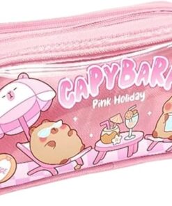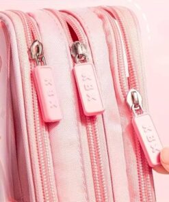 مقلمة أقلام رصاص شفافة من القماش بسعة كبيرة وطباعة كرتونية لطيفة مع ثلاث أقسام لتنظيم الأدوات المكتبية، متعددة الوظائف بتصميم سوستة متينة