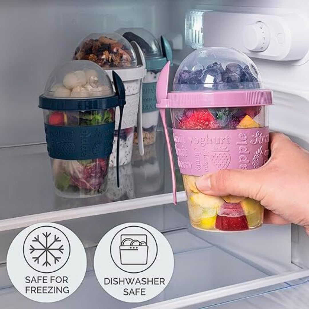 اكواب زبادي من قطعة واحدة، غطاء مع ملعقة، خالية BPA، حاوية قابلة لاعادة الاستخدام، اواني افطار للحبوب اثناء التنقل، برطمانات شوفان ليلية للشوفان والشوفان والفاكهة، 600 مل، صنع في تركيا
