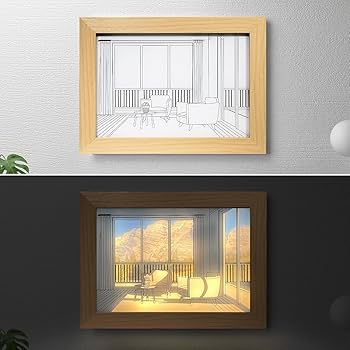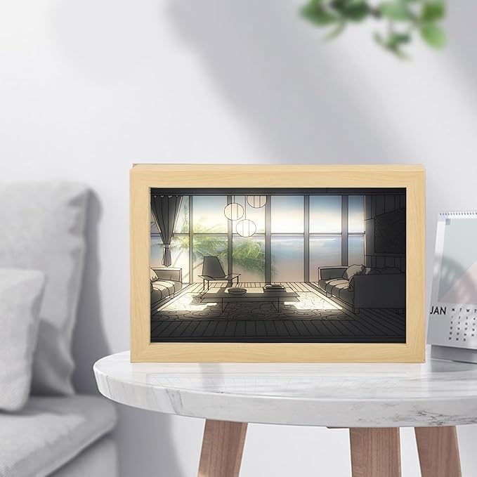 برواز صور فني بإضاءة ليد للتلوين الظلي، يعمل عبر منفذ USB مع 3 درجات إضاءة (دافئة، محايدة، بيضاء)، تصميم أنيق من الاكريليك والخشب مثالي للمنزل والمكتب والهدايا ، مقاس 30×22 سم