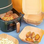 بطانات قلاية هوائية ورقية مربعة 20 سم/200 ملم حجم كبير للاستعمال مرة واحدة للقلاية الهوائية من السيليكون المقاوم للماء سعة 5 – 6 لتر (100 قطعة)