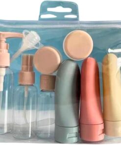مجموعة زجاجات فاخرة قابلة لاعادة الملء للسفر مكونة من 9 قطع، بخاخ لوشن وشامبو وجل الاستحمام، حاوية فارغة للسوائل ومستحضرات التجميل، اداة التعبئة