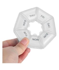 صندوق حبوب أسبوعي لمدة 7 أيام هو الحل المثالي لتنظيم أدويتك اليومية بطريقة مريحة وفعالة. يتميز بتصميمه الدائري سهل الحمل، مما
