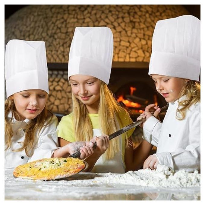 قبعات شيف بيضاء غير منسوجة للأطفال من قطعتان، قبعات شيف قابلة للتعديل للمطبخ والخبز والطبخ والمنزل والمدرسة والبيتزا ومستلزمات الحفلات، أبيض، قياس واحد، للأطفال من الجنسين. هذه القبعات مثالية للأنشطة الصفية، حيث يمكن استخدامها في الفصول الدراسية لتشجيع الإبداع من خلال الرسم أو كتابة العبارات. كما أنها هدايا رائعة في المناسبات المختلفة مثل أعياد الميلاد. تتميز القبعات بأنها مصنوعة من خامات غير منسوجة، مما يجعلها خفيفة الوزن ومريحة وآمنة للاستخدام طوال اليوم.