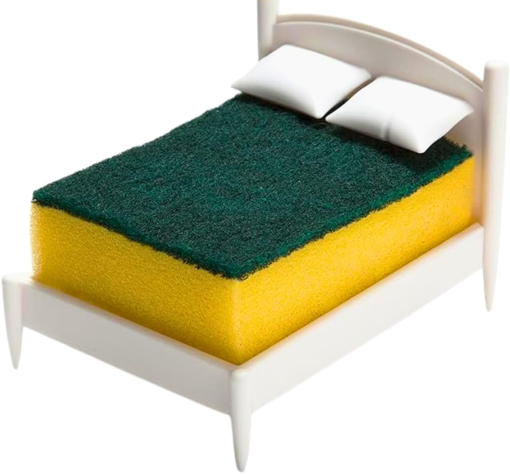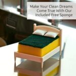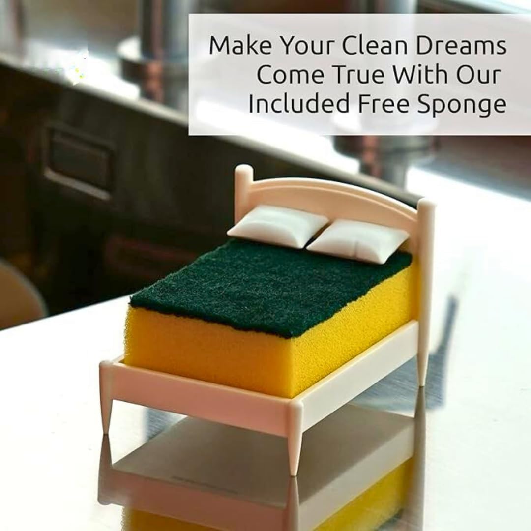 حامل اسفنجة المطبخ من البلاستيك على شكل سرير لحوض المطبخ يناسب مقاسات سكرابي القياسية منظم وديكور حوض المطبخ الفريد وفكرة هدية مثالية مع اسفنجة متضمنة