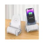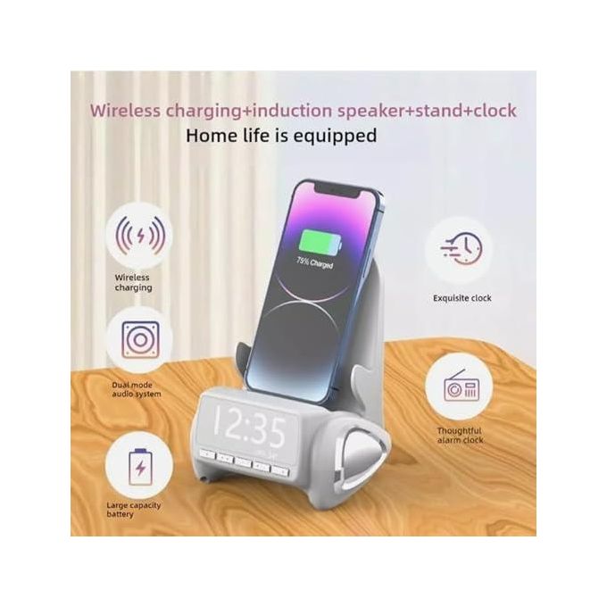 حامل مكبر صوت بلوتوث لاسلكي – شاحن تلقائي سريع مع حامل هاتف مستقر – قاعدة صوت ذكية مع عرض بلا استخدام اليدين للمنزل والمكتب