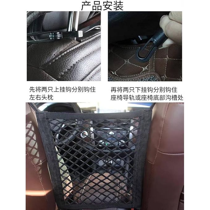 - سهولة الاستخدام: تعلق بسهولة على ظهر أي مقعد سيارة، مما يوفر وصولاً سهلاً للعناصر المخزنة.