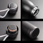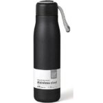 زجاجة ماء معزولة بالمفرغ 550 مل، جدار مزدوج من الفولاذ المقاوم للصدأ، تحافظ على سخونة المحتويات لمدة 10 ساعات وبرودة لمدة 30 ساعة، غطاء محمول (أسود)