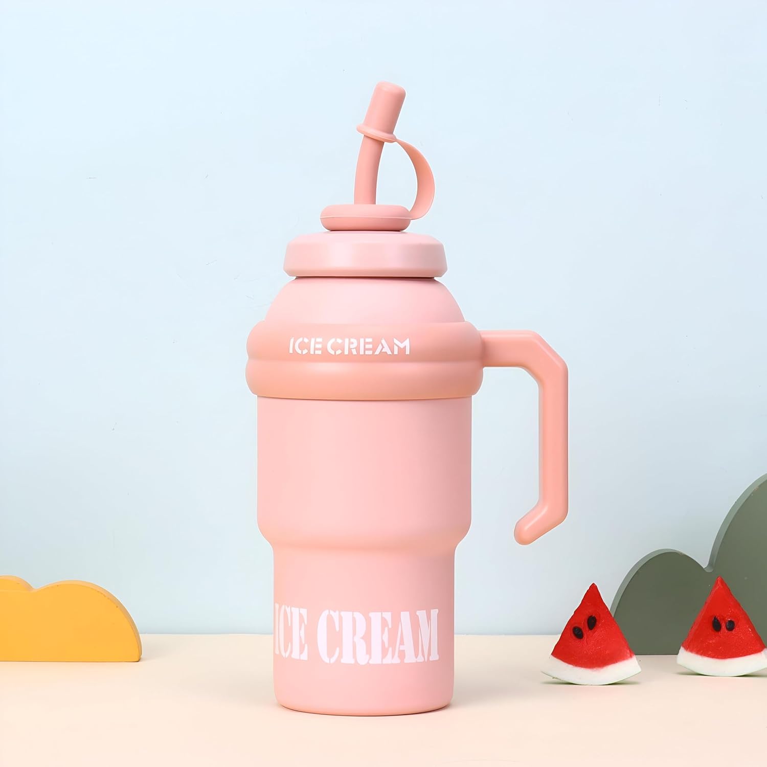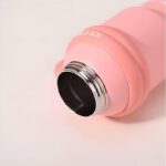 زجاجة ماء معزولة من الستانلس ستيل بسعة 1000 مل – كوب حراري للقهوة بمقبض وشفاط – كوب مزدوج الجدران للمشروبات الساخنة والباردة، مضاد للتسرب، مثالي للاستخدام في الهواء الطلق (وردي)