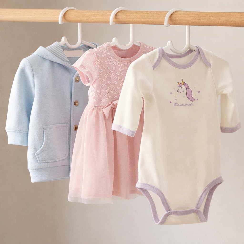 حافظ على ملابس الأطفال منظمة وعرضها بأناقة مع هذه المجموعة العملية من شماعات ملابس الأطفال المصممة لدعم التخزين الفعال في خزانة الملابس للرضع والأطفال الصغار. بعرض 29 سم، توفر هذه الشماعات مقاسًا مثاليًا للملابس الصغيرة بما في ذلك القمصان والفساتين والجاكيتات والملابس دون تمدد الأقمشة الرقيقة. يوفر الهيكل خفيف الوزن والمتين دعمًا موثوقًا به بينما يظل لطيفًا على مواد ملابس الأطفال. مصممة لزيادة تنظيم الخزانة، تساعد مجموعة الشماعات هذه على الحفاظ على خزانة الملابس مرتبة من خلال منع التجاعيد وعلامات الطي والفوضى داخل الأدراج. يسمح التصميم النحيف بتخزين العديد من الملابس بكفاءة مع تحسين مساحة الخزانة المتاحة. مثالي لخزائن الأطفال وخزائن الأطفال وخزائن السفر، يضمن هذا الحل بقاء الملابس اليومية مرئية ويمكن الوصول إليها للاختيار السريع. تحمي الحواف الناعمة الأقمشة الرقيقة مع دعم العناية بالملابس على المدى الطويل. مناسبة للآباء ومقدمي الرعاية والعائلات التي تستعد لتنظيم غرفة الأطفال، تعمل مجموعة الشماعات هذه على تبسيط إدارة الملابس اليومية مع الحفاظ على بيئة خزانة ملابس نظيفة ومنظمة. يدعم حجم العبوة المريح تنظيم الملابس الكامل لحديثي الولادة والأطفال الصغار مما يساعد الآباء على إدارة خزانة الملابس المتنامية بسهولة. مصممة للاستخدام اليومي المتسق، توفر هذه الشماعات موثوقية عملية لتخزين ملابس الأطفال مع الحفاظ على أنظمة الخزانة المنظمة التي توفر الوقت وتحسن الكفاءة المنزلية. مثالية لخزائن الملابس المنزلية وخزائن الأطفال وإعداد السفر، تحول هذه المجموعة تخزين ملابس الأطفال إلى نظام أنيق يسهل الوصول إليه وخالي من الإجهاد مصمم لاحتياجات التنظيم العائلي الحديثة.