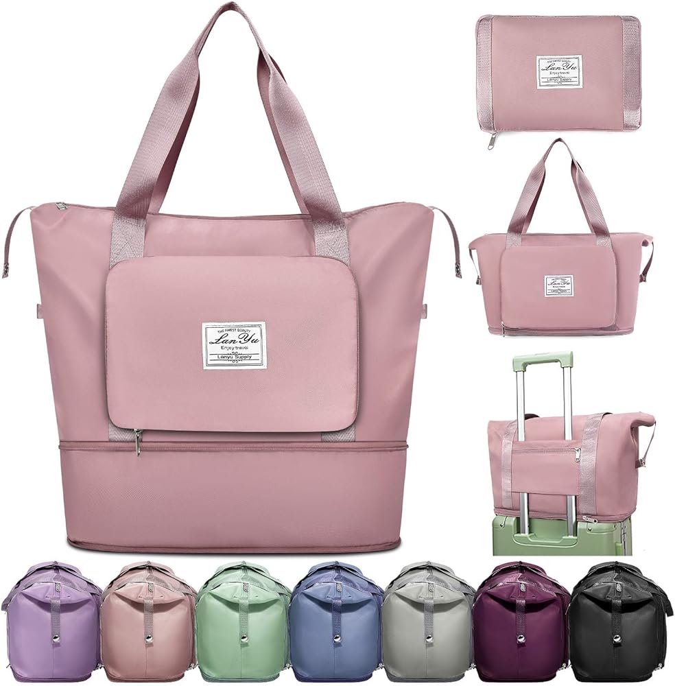 شنطة يد كبيرة توت من القماش الخشن محمولة وقابلة للطي بسعة كبيرة ومقاومة للماء مع فصل بين الجاف والرطب للنساء، مناسبة للسفر وصالة الالعاب الرياضية