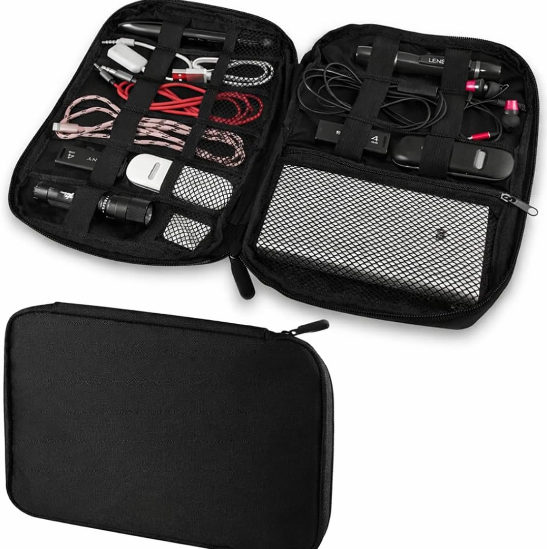 حافظ على أجهزتك الأساسية مرتبة ومحمية أينما ذهبت مع حقيبة تنظيم الإكسسوارات الإلكترونية المحمولة هذه، المصممة لتوفير تخزين فعال وراحة يومية. تم تصميم هذه الحقيبة المدمجة للمسافرين والمحترفين والطلاب، حيث توفر داخليًا منظمًا يحافظ على فصل العناصر وتأمينها وسهولة الوصول إليها. تحتوي الحقيبة على عدة أحزمة مطاطية وجيوب شبكية لتثبيت الكابلات والشواحن وسماعات الأذن وبطاقات الذاكرة والبنوك الطاقة والأجهزة الصغيرة، مما يمنع التشابك أو التلف أثناء التنقل.