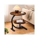 طاولة جانبية للاريكة بتصميم عصري مزدوج الطبقات وهيكل ثابت صغير الحجم موفر للمساحة لغرفة المعيشة وغرفة النوم، مصنوعة من مواد متينة وسهلة الحركة