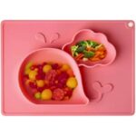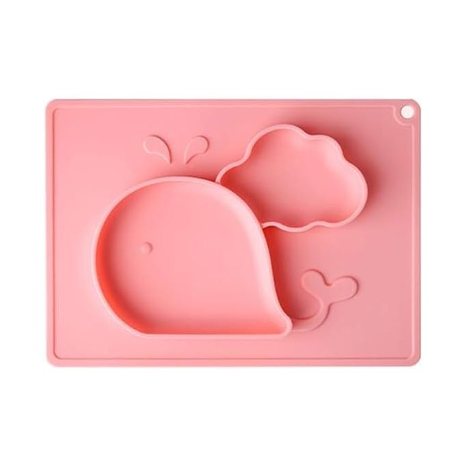 طبق سيليكون مقسم للأطفال مع قاعدة غير قابلة للانزلاق (وردي، شكل حوت)