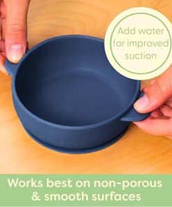 طبق طعام من السيليكون بقاعدة شفط للاطفال الرضع خال من البيسفينول ايه وامن للاستخدام في الميكروويف وغسالة الصحون حتى 230 درجة (كحلي)