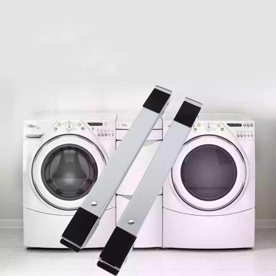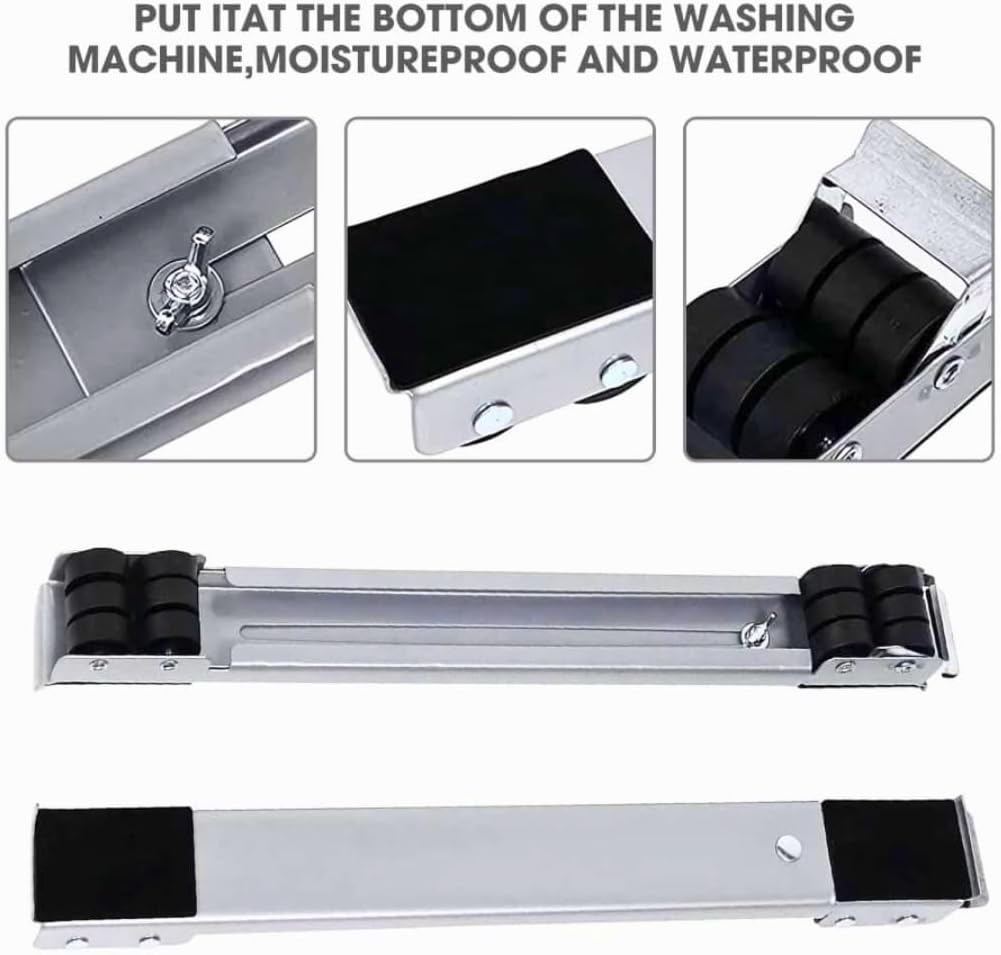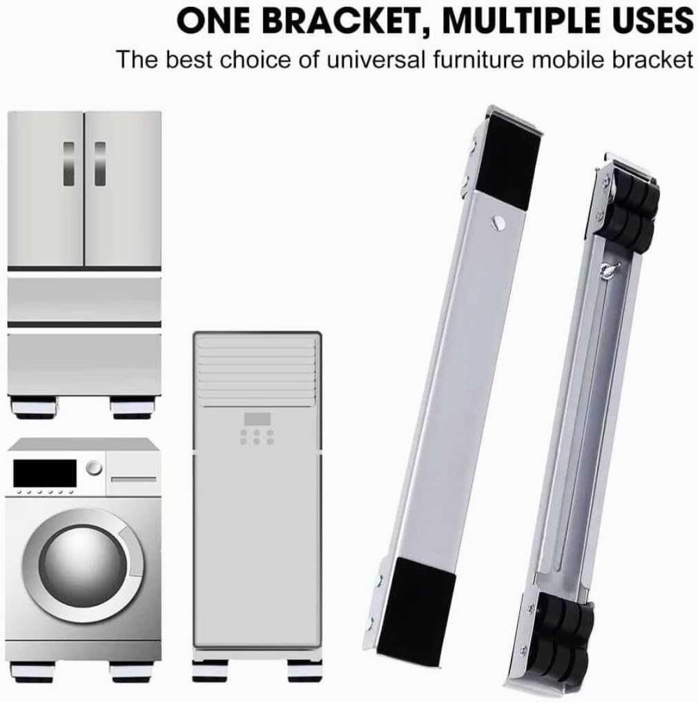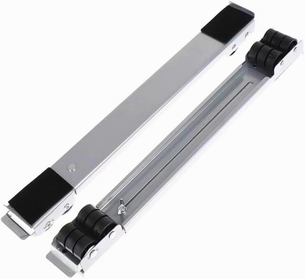 طقم حامل متحرك عالي الجودة ومتين مزود بـ 24 عجلة مع فرامل بتحميل يصل حتى 200 كجم للثلاجة والأثاث والغسالة والمجفف من قطعتين لون فضي مقاس 45 سم بتصميم قابل للتعديل 70 سم