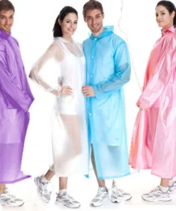 معطف مطر قابل لإعادة الاستخدام للبالغين من مادة ايفا مقاوم للماء بتصميم محمول وقابل للتعبئة للسفر والتخييم والأنشطة الخارجية، جاكيت مطر سميك طويل للرجال والنساء