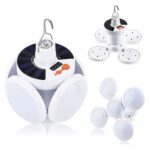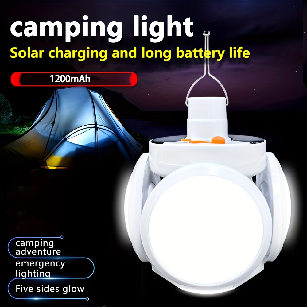 فانوس طوارئ ليد قابل لإعادة الشحن مع لوحة شمسية، مصباح معلق قابل للطي للخيمة، مصباح عمل محمول بسطوع متعدد الأوضاع، مصنوع من بلاستيك ايه بي اس، أبيض مائل للوردي، لمستلزمات السفر والتخييم