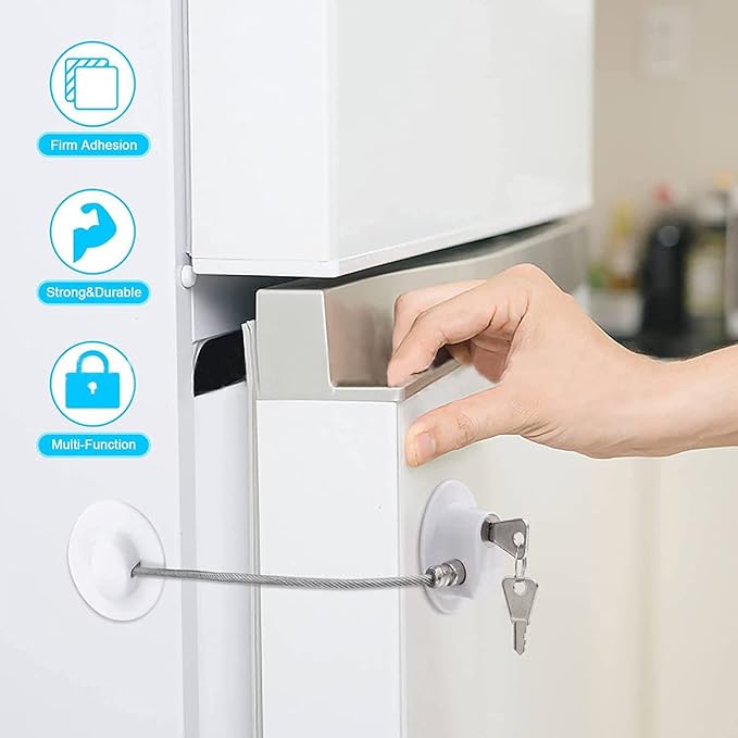 تأكد من سلامة أطفالك الصغار مع قفل باب الثلاجة القوي الخاص بنا. لا مزيد من القلق بشأن استكشاف الأطفال الصغار الفضوليين للمناطق الخطرة! يوفر هذا القفل المبتكر حلاً آمنًا بدون متاعب البراغي أو الحفر، مما يحافظ على سلامة أجهزتك وخزائنك. مصنوع مع وضع المتانة في الاعتبار، يتميز القفل الخاص بنا بتصميم قوي لتحمل الشد والسحب المرح للأطفال. توفر المفاتيح المتضمنة سهولة الوصول للبالغين مع الحفاظ على الأشياء الثمينة والمواد الضارة المحتملة بعيدًا عن متناول الأيدي الفضولية. التركيب سهل بفضل الجزء الخلفي اللاصق القوي، مما يوفر ثباتًا موثوقًا به دون إتلاف الأسطح. سواء كان تأمين أبواب الثلاجة أو الخزانات أو النوافذ، فإن قفلنا متعدد الاستخدامات يوفر راحة البال في جميع أنحاء منزلك. مصمم بلون أبيض واضح، ويمتزج بسلاسة مع ديكورك الحالي مع تعزيز تدابير السلامة بشكل سري. عزز جهودك في حماية الأطفال مع قفل باب الثلاجة الموثوق به الخاص بنا واستمتع بحياة خالية من القلق مع أطفالك الصغار.